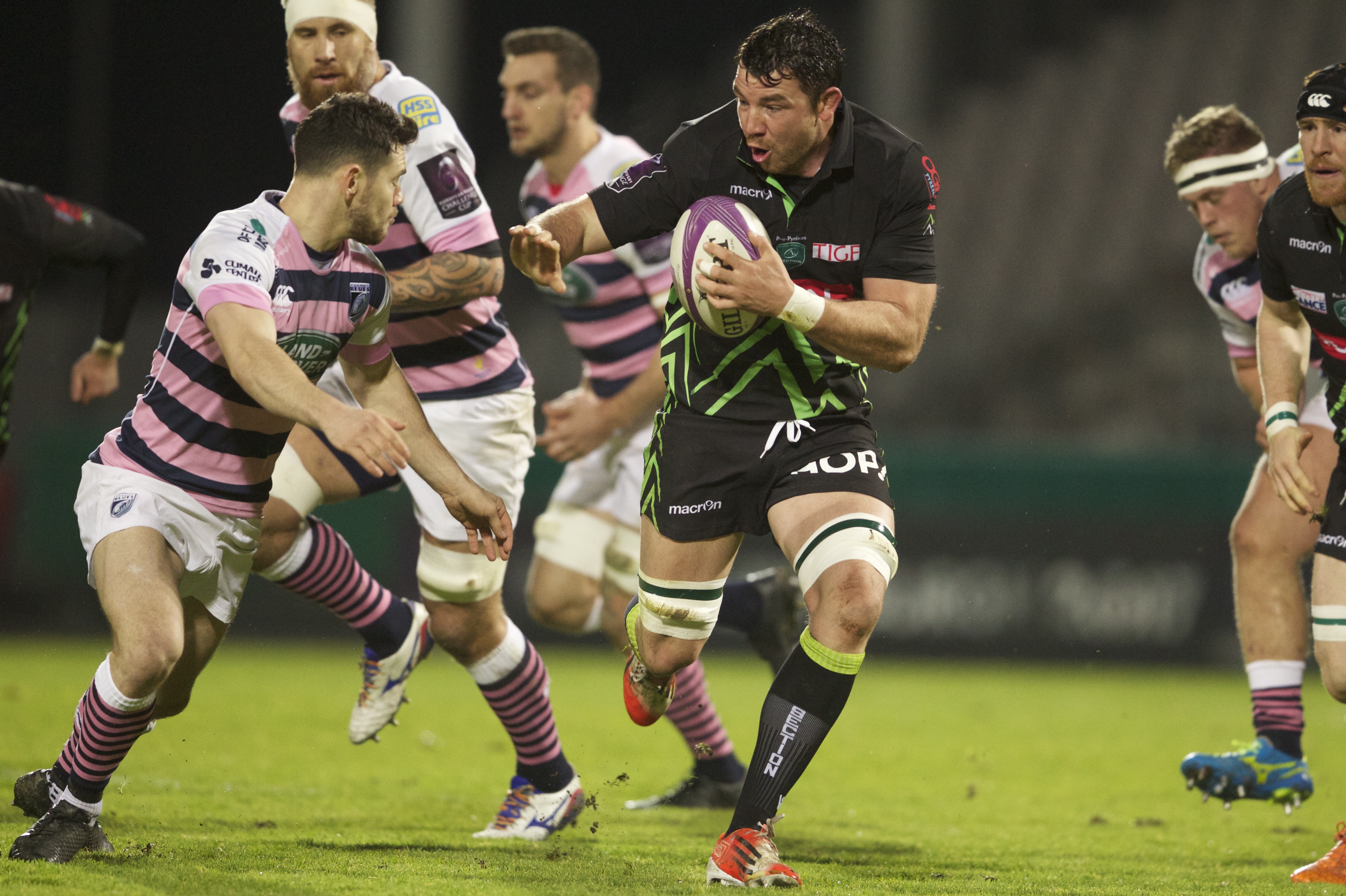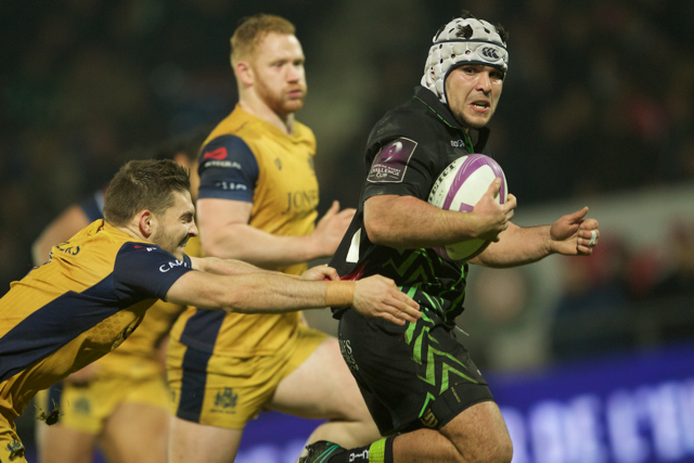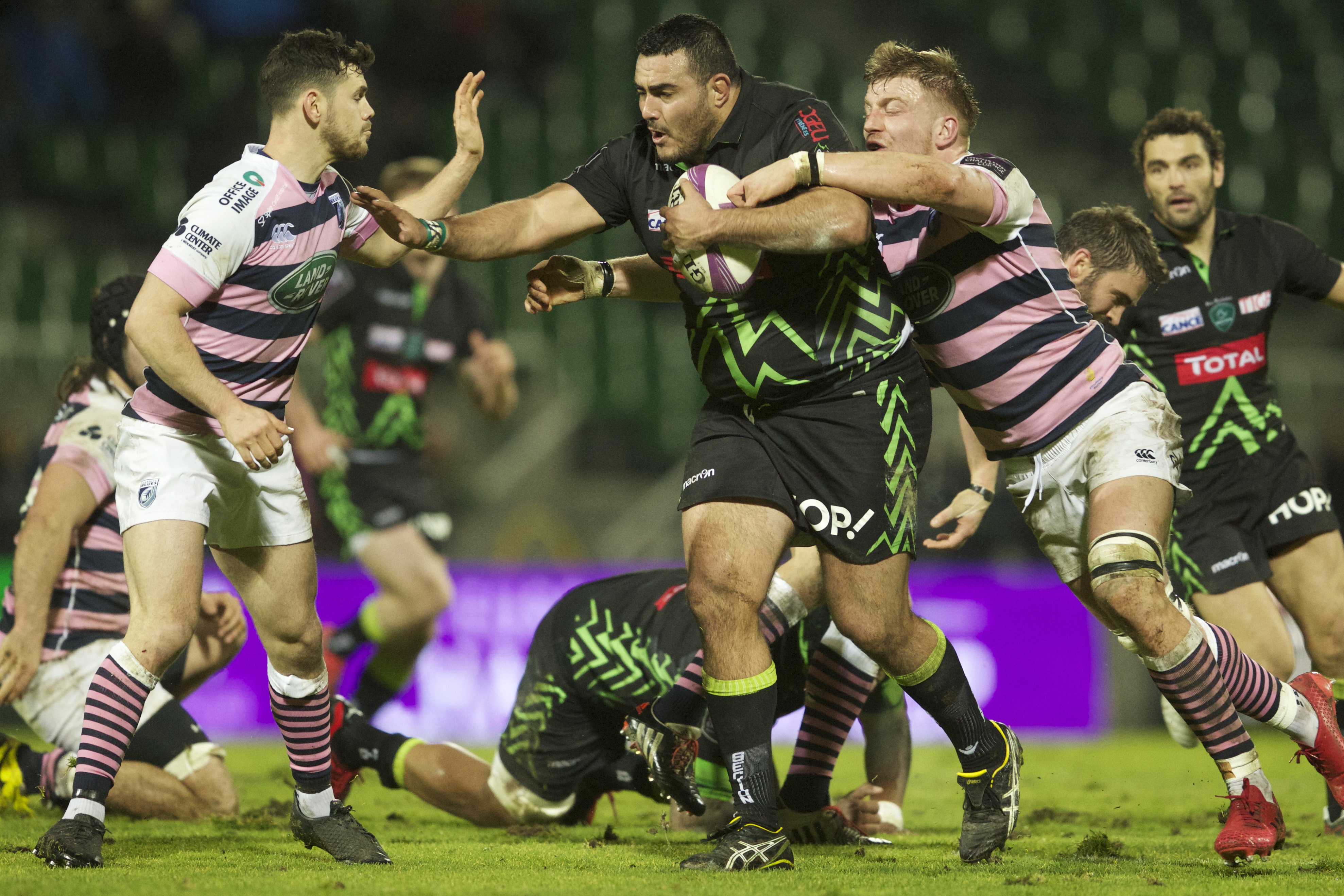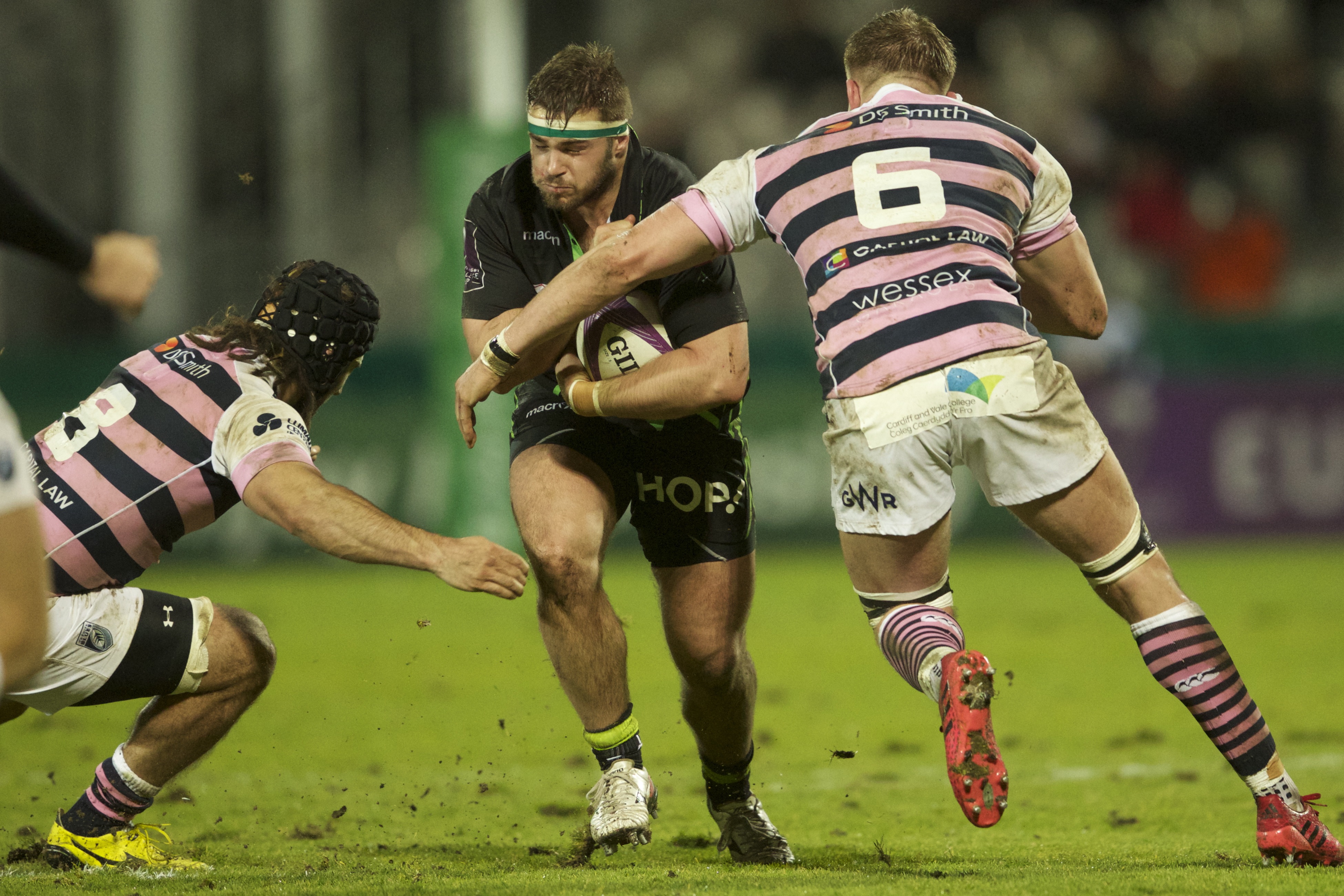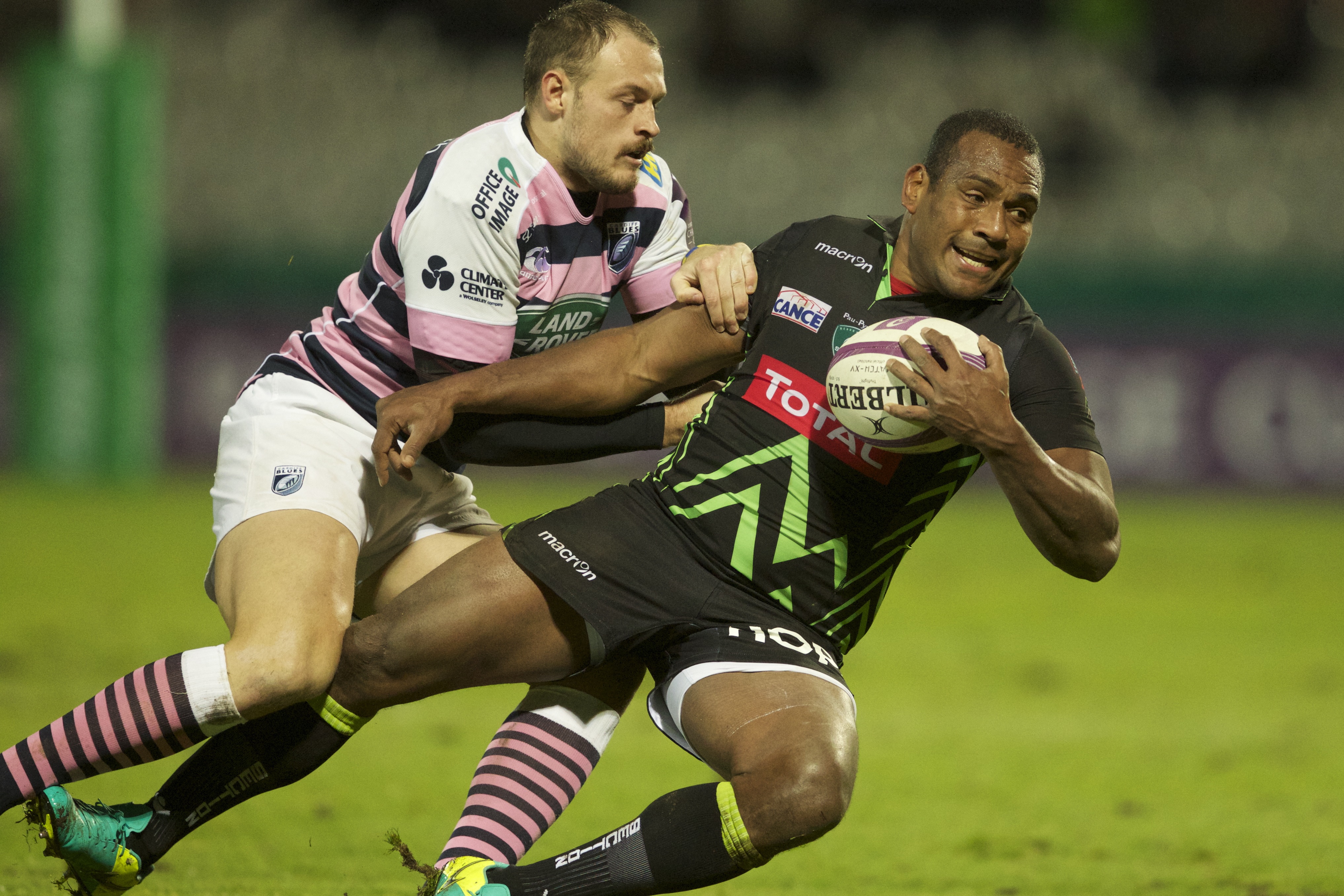 Rhys Curran le deuxième ligne Australien de Toulouse plaque le demi d’ouverture Richie Myler des Dragons pour ce match de préparation à la super league
