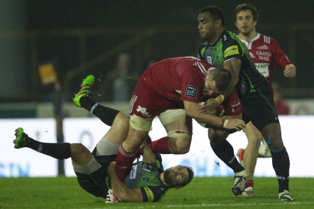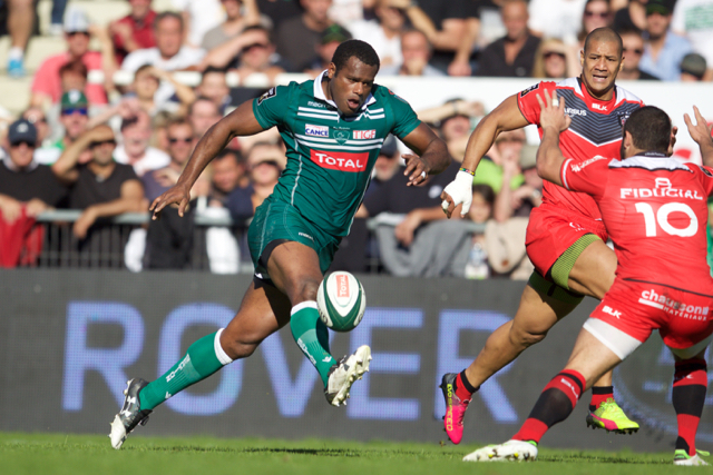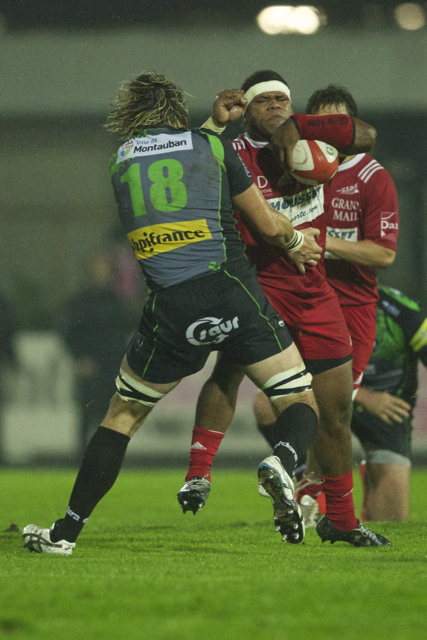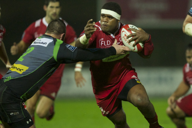 Apisai Naqalevu le 3/4 centre de l’U.S. Dax joueur Fidjien champion de la passe après contact lors de la défaite de son équipe pour le compte de la 10èmes journées de la PRO D2
