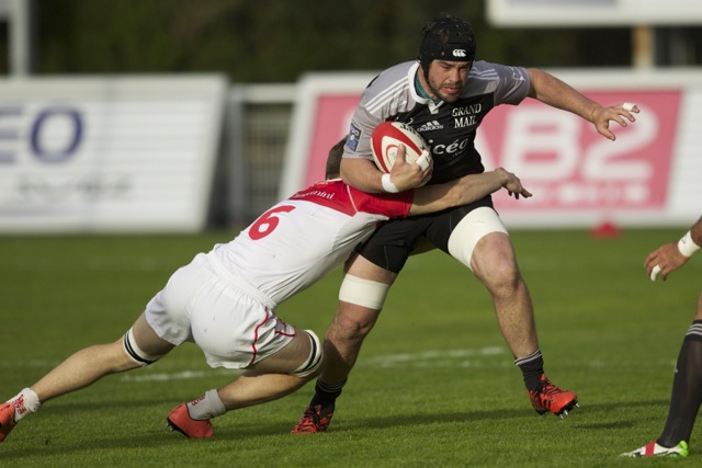 Olivier Klemenczak le trois-quarts centre du club de Dax lors du derby Landais comptant pour le championnat de France de PRO D2