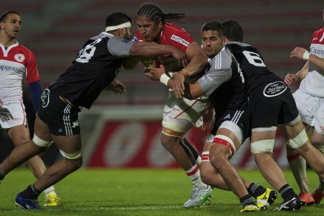 Mathieu Bastareaud le 3/4 centre international de Toulon aux 39 sélections va se faire plaquer par Abdellatif Boutaty le second ligne de Pau lors de ce match comptant pour le championnat de France de TOP 14