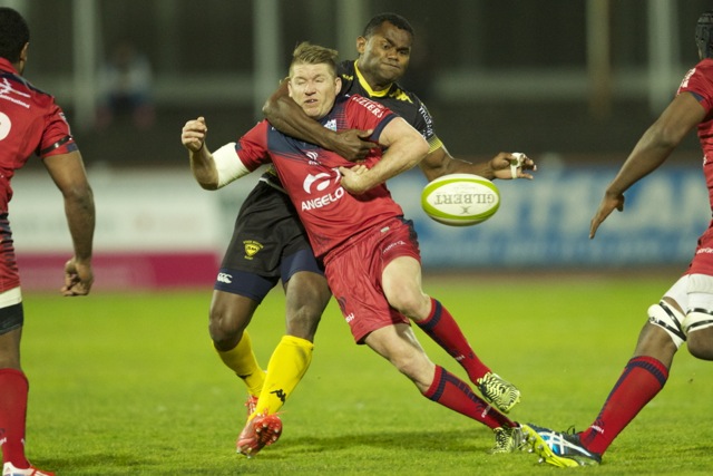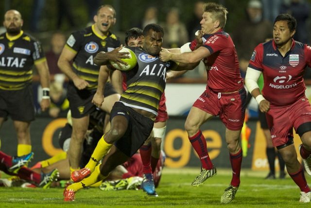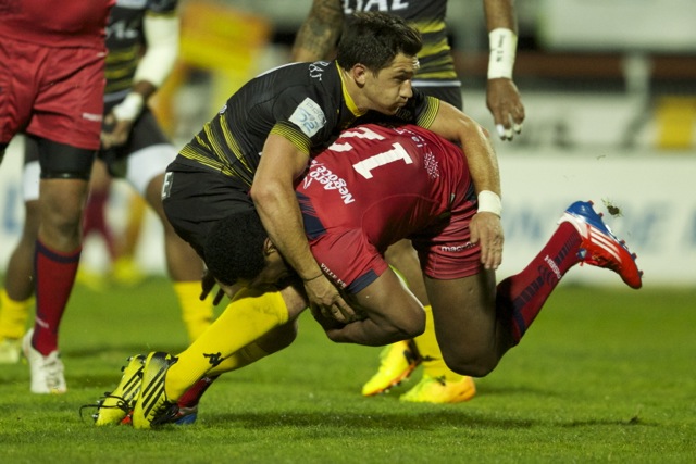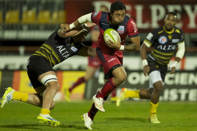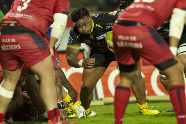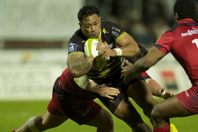 Haisini Taulanga le troisième ligne centre Tongien charge et va marquer un essai lors de ce match de PRO D2