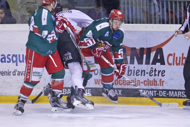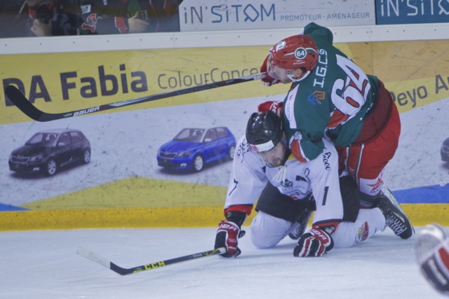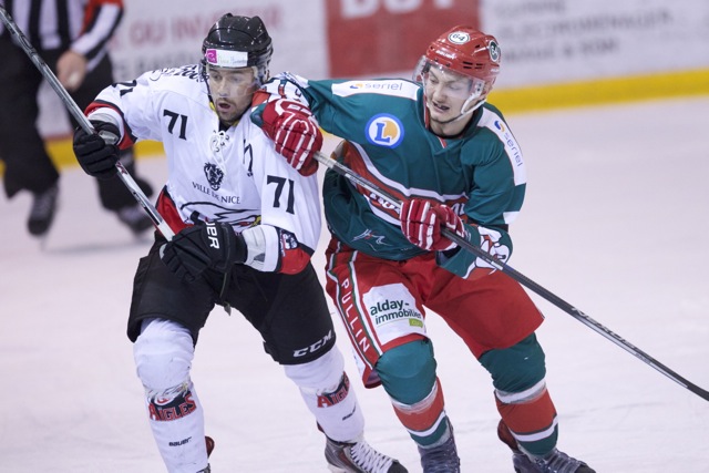 Nicolas Thos défenseur de l’Hormadi d’Anglet rencontre le joueur Niçois d’origine Tchèque Zbynék Hampl match 3 de la division 1 de la finale d’ascension pour la ligue élite