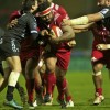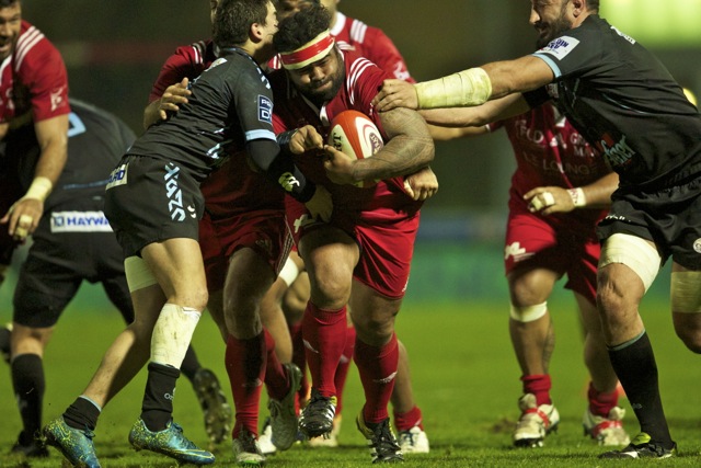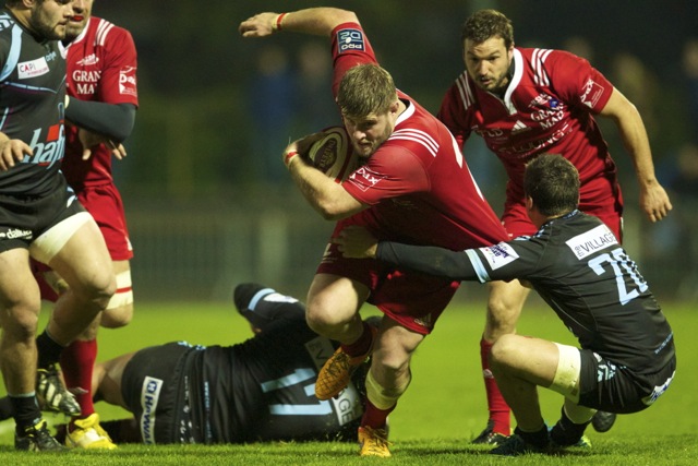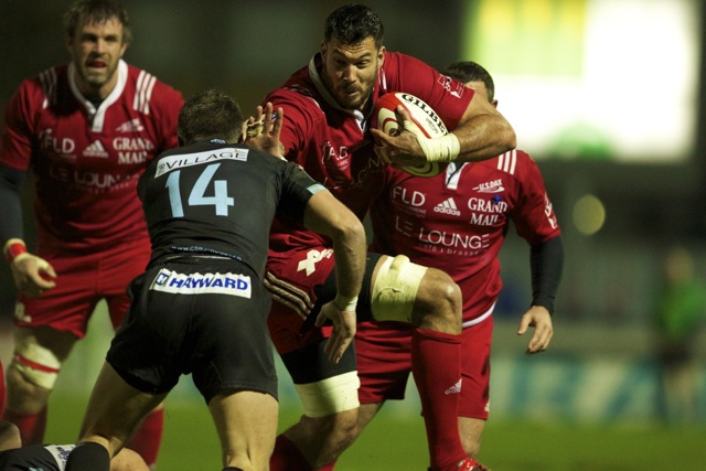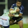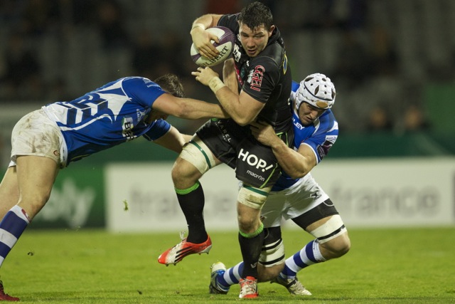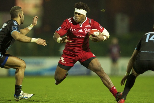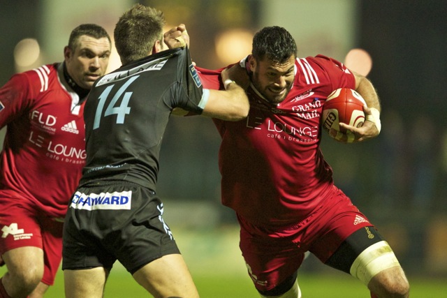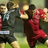 Joseph Tu’ineau l’international Tongien charge dans la défense Berjallienne lors de la victoire du club Landais dans ce match comptant pour une journée de PRO D2