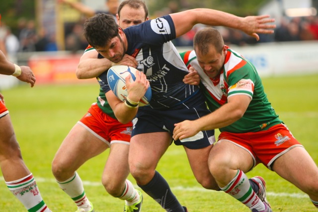 Andrews Bentley le seconde ligne international de Pia lors de la finale du championnat de France