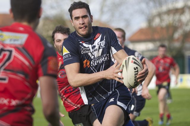 Francis Vaiotu le trois-quarts Neo-Zelandais de l’équipe de Pia lors de la demi-finale du championnat de France