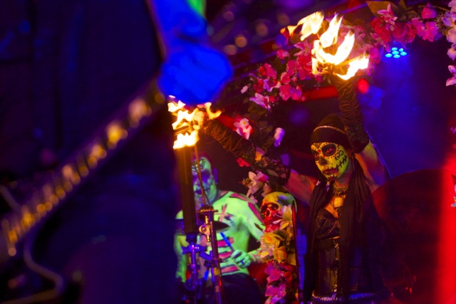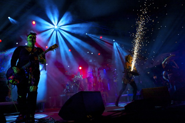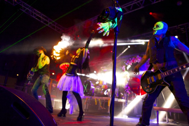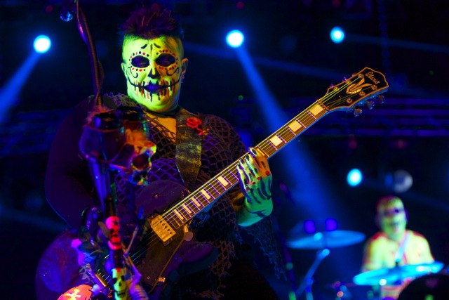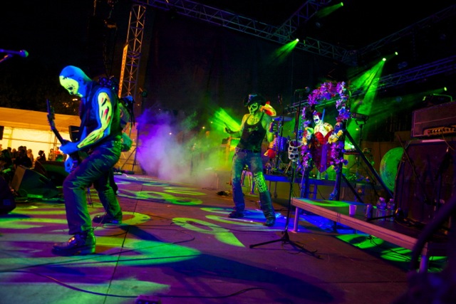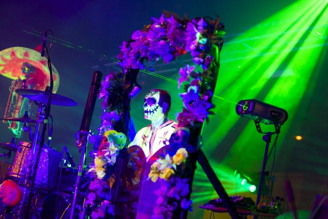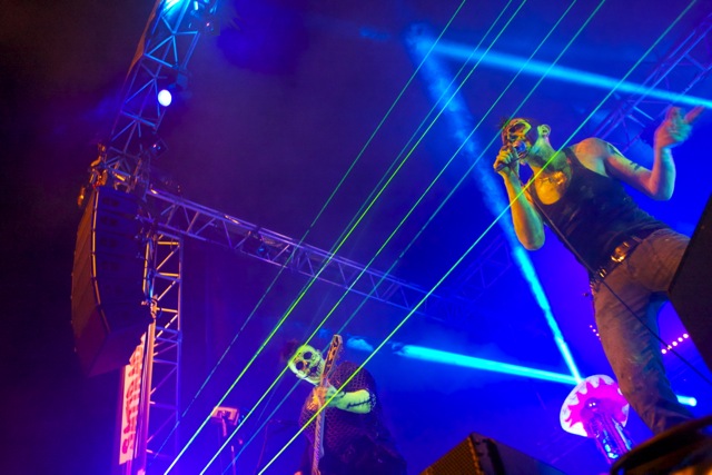 Xavier A.K.A. X.av le batteur du groupe Toulousain de métal électro indus joue pour le festival satiradax