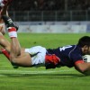 Thomas Bosc demi-d’ouverture de l’équipe de France lors d’une tentative de transformation d’essai suite à un essai lors de ce test match
