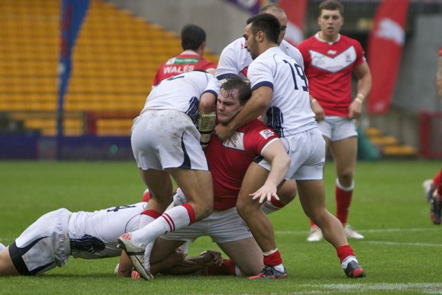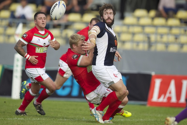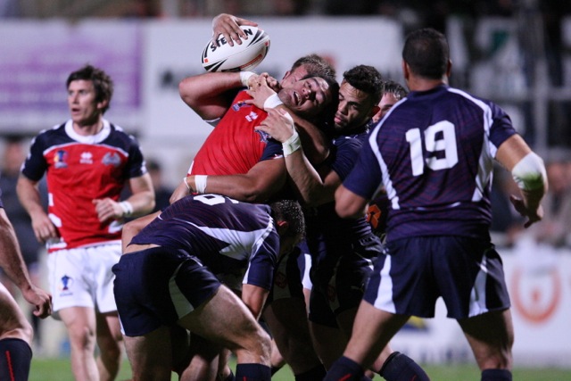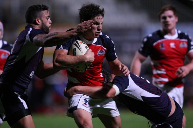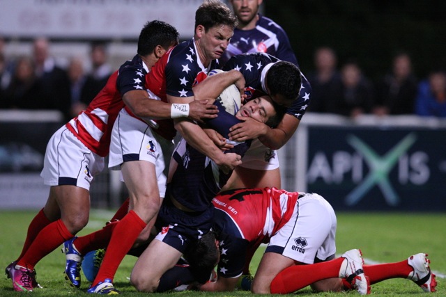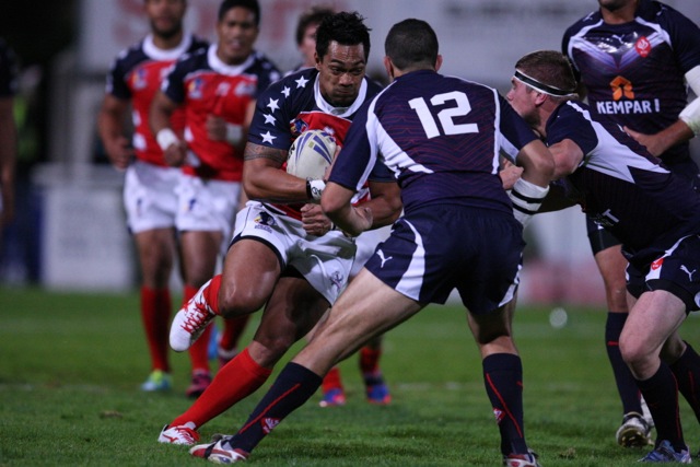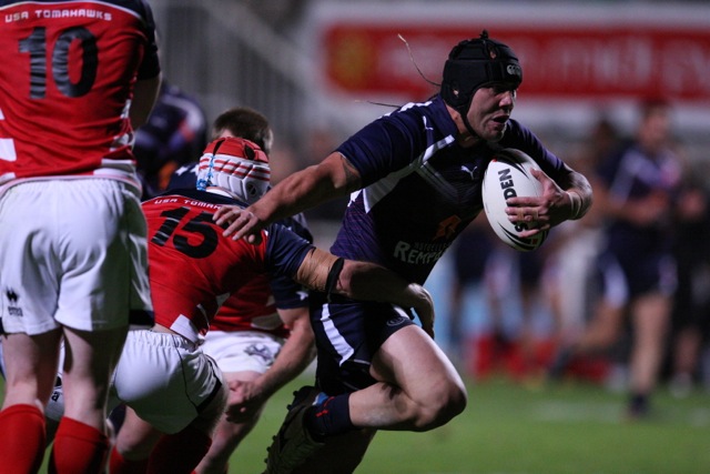 Daniel Howard le seconde ligne de l’équipe des U.S.A. Tomahawks lors de ce test match d’avant coupe du monde 2013