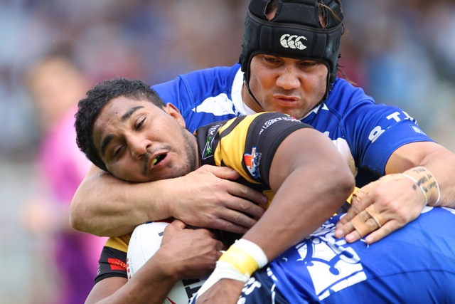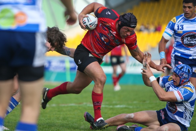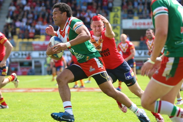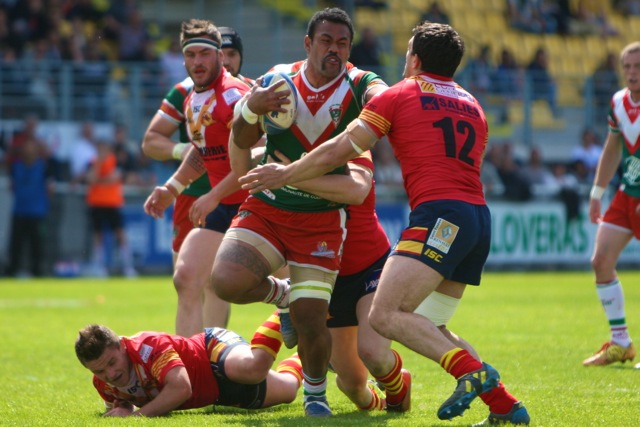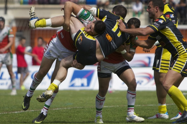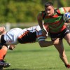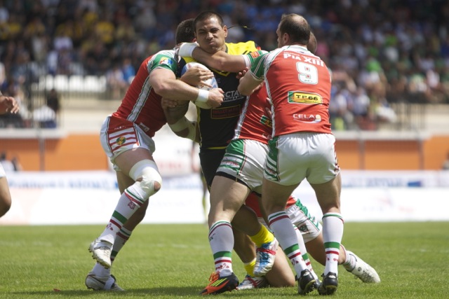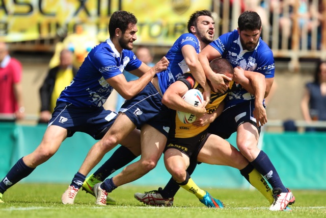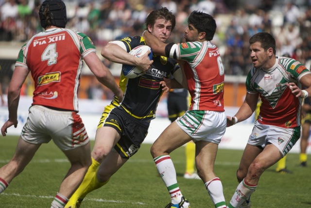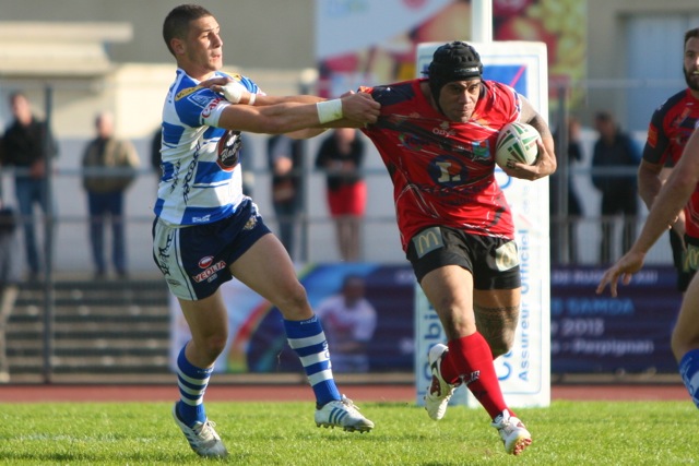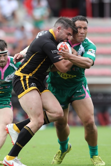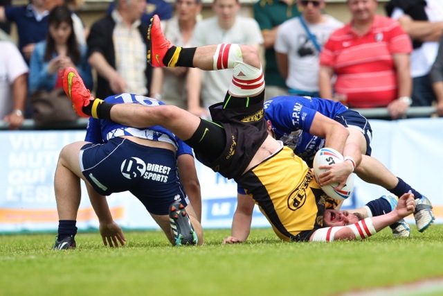 Andrews Bentley le seconde ligne international de Pia lors de la finale du championnat de France