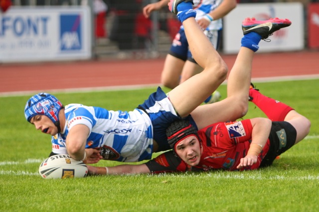 Yannick Ruh ailier du sporting Avignon rugby XIII lors de la finale de coupe de France d’élite 1