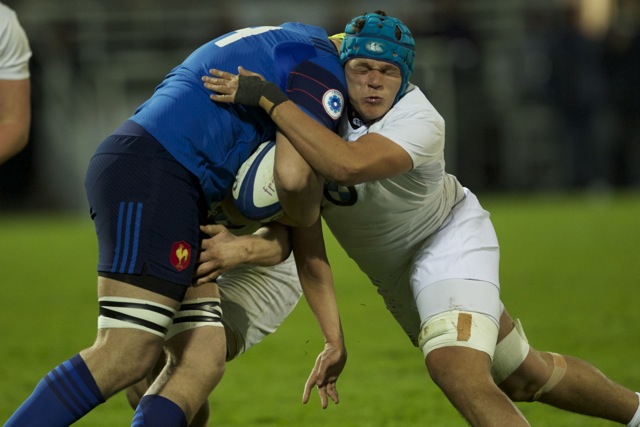 Judicaël Cancoriet troisième ligne de l’équipe de France et de A.S.M. Clermont lors de ce match du championnat des 6 nations des moins de 20 ans
